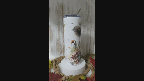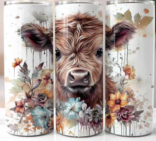 20 oz skinny tumbler highland cow theme with floral design